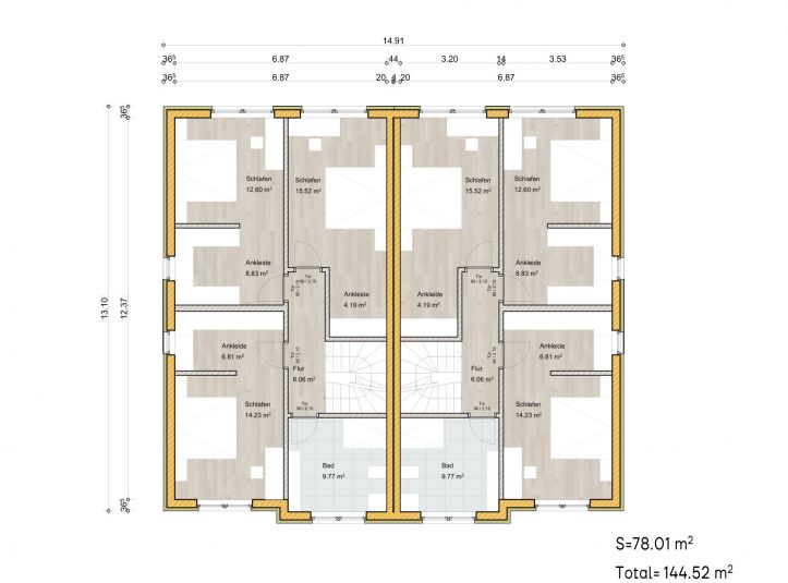 Jede Einheit verfügt über ca. 144,52 m2 Wohnfläche.